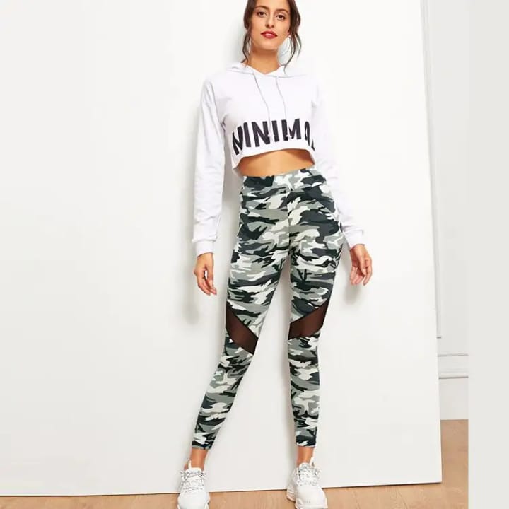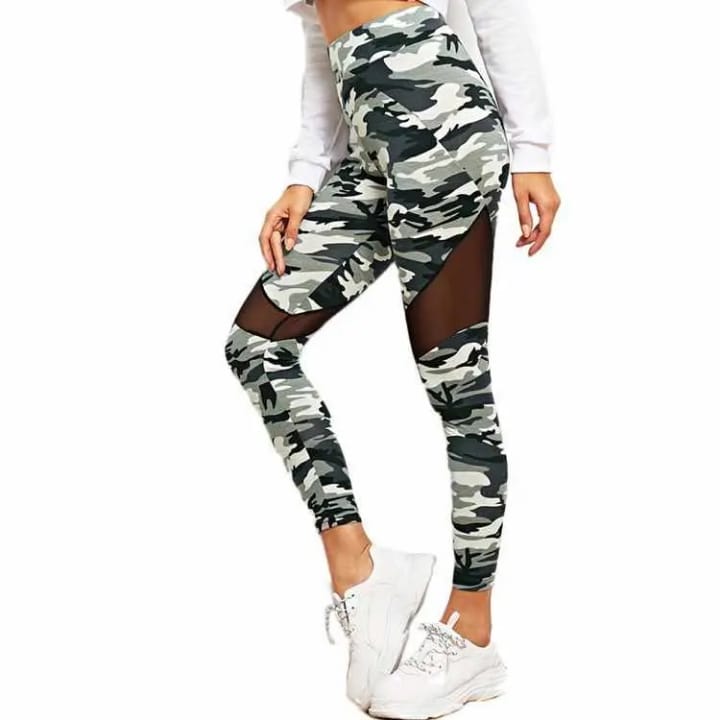 Women's Printed Mesh Stitching High-Waist Elastic Sports Yoga Leggings